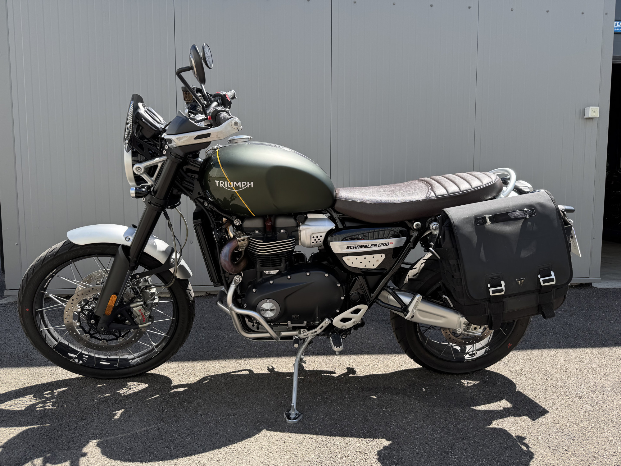 Moto feeling 73, votre concessionnaire exclusif TRIUMPH pour la Savoie, vous propose à la vente cette TRIUMPH SCRAMBLER 1200 XC, coloris Kaki Green and Brooklands Green.
